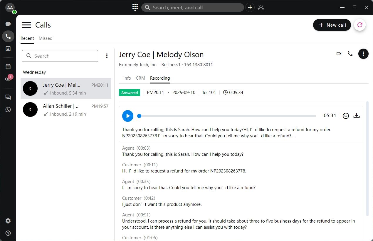 Use AI-driven sentiment analysis to quickly identify calls that may require attention. Supervisors can review sentiment indicators and open transcripts to gain context and assess service quality.